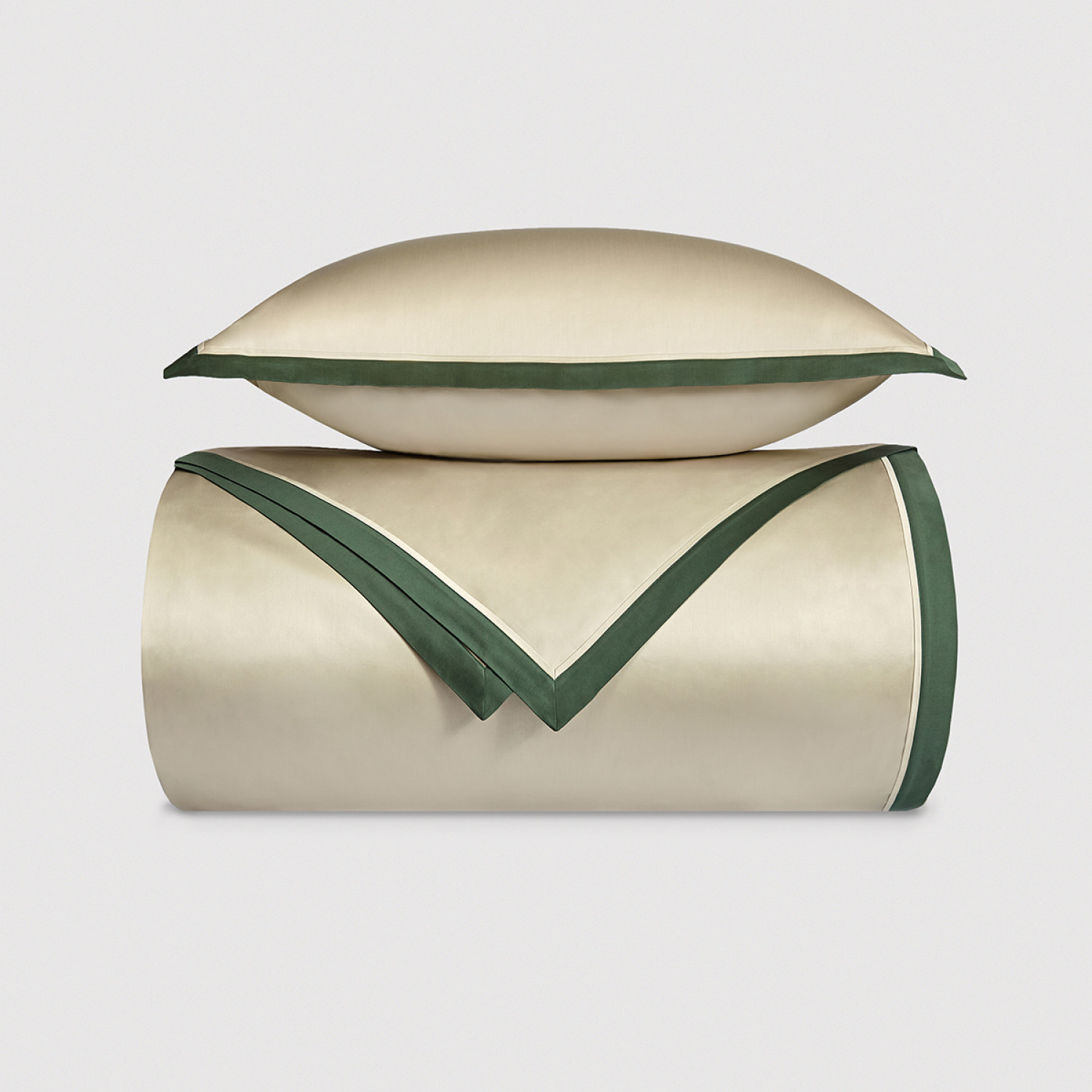Комплект постельного белья RHONE 600 tc жемчужный с зеленым кантом